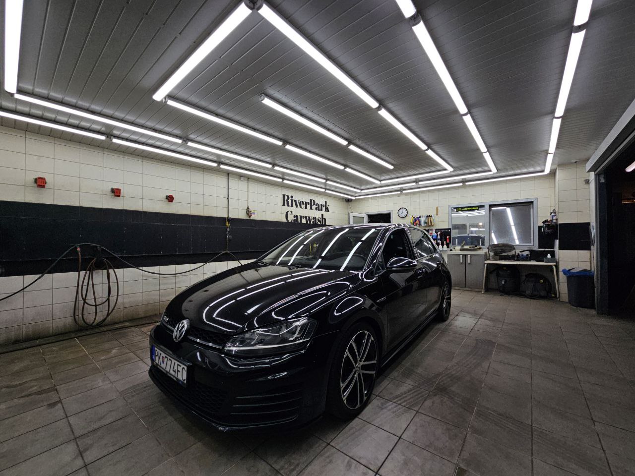 Aktívna pena, opláchnutie vodou pod tlakom, ručné umytie, aplikácia tekutého vosku, vysušenie, umytie kolies, vyčistenie rámov dverí a kufra, vyčistenie vonkajších skiel a zrkadiel